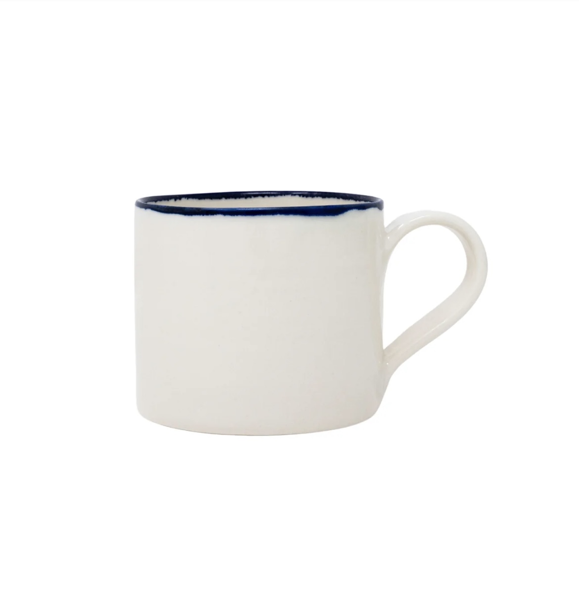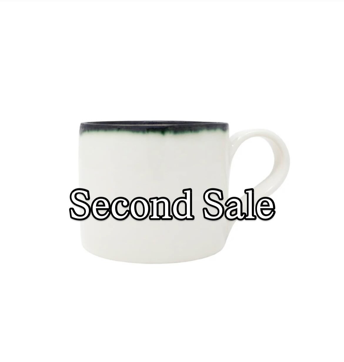 These green & blue rimmed medium mugs are seconds with a small glaze fault, distortion or hairline crack.